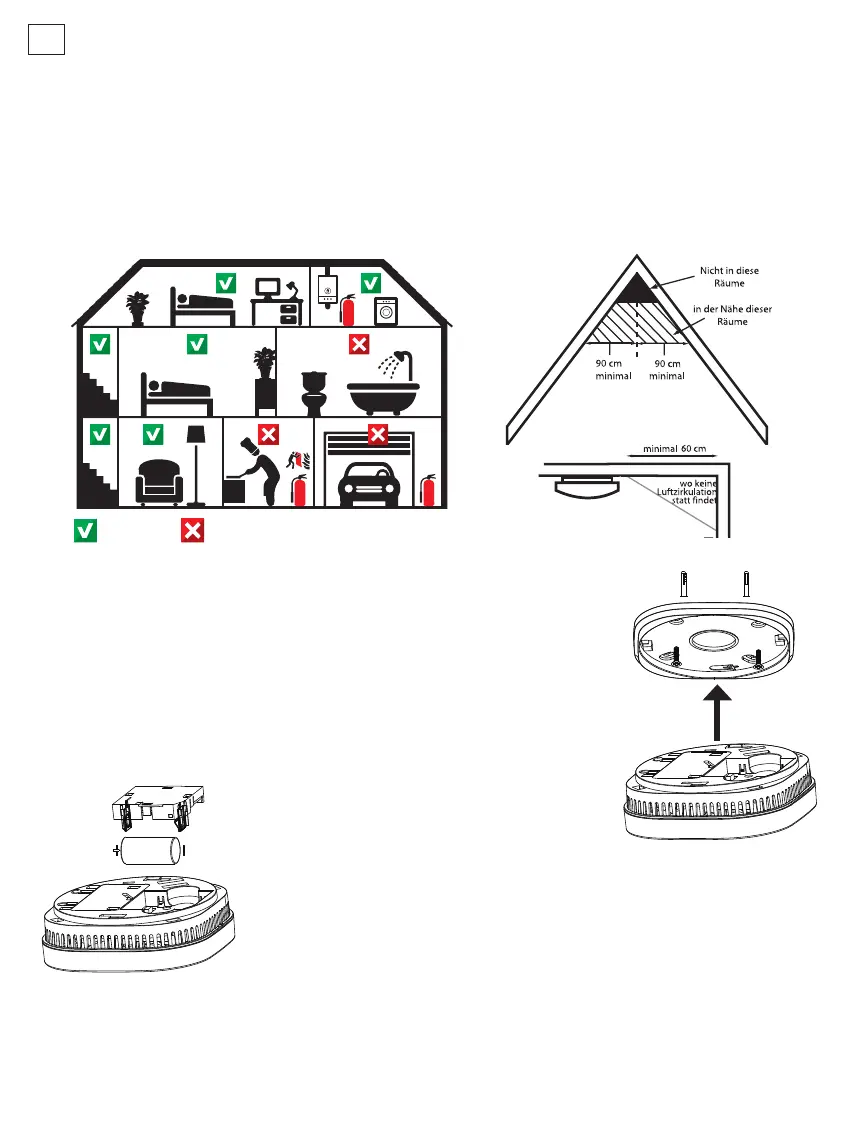 • Platzieren Sie mindestens einen Rauchmelder auf jeder Etage Ihres Hauses.