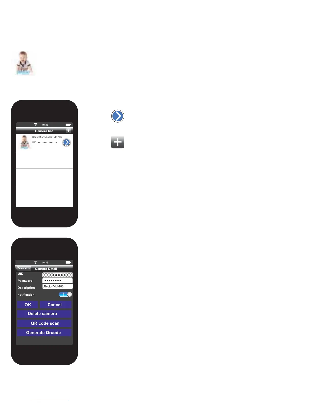 button to add a new camera. The same login screen will