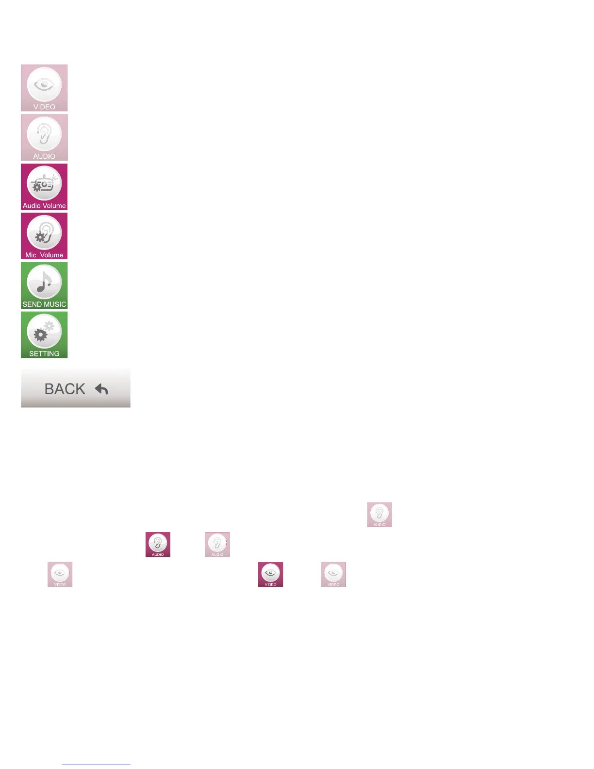 Key to turn off receiving audio from the camera. The other functions will continue to