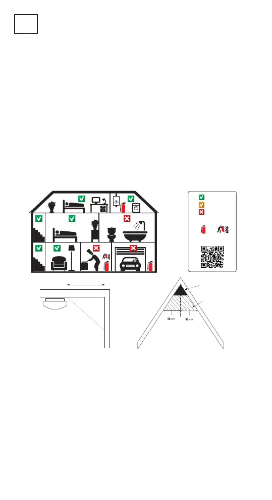 • Install the rst smoke detector near the bedroom. Ensure that it is placed so, if it would