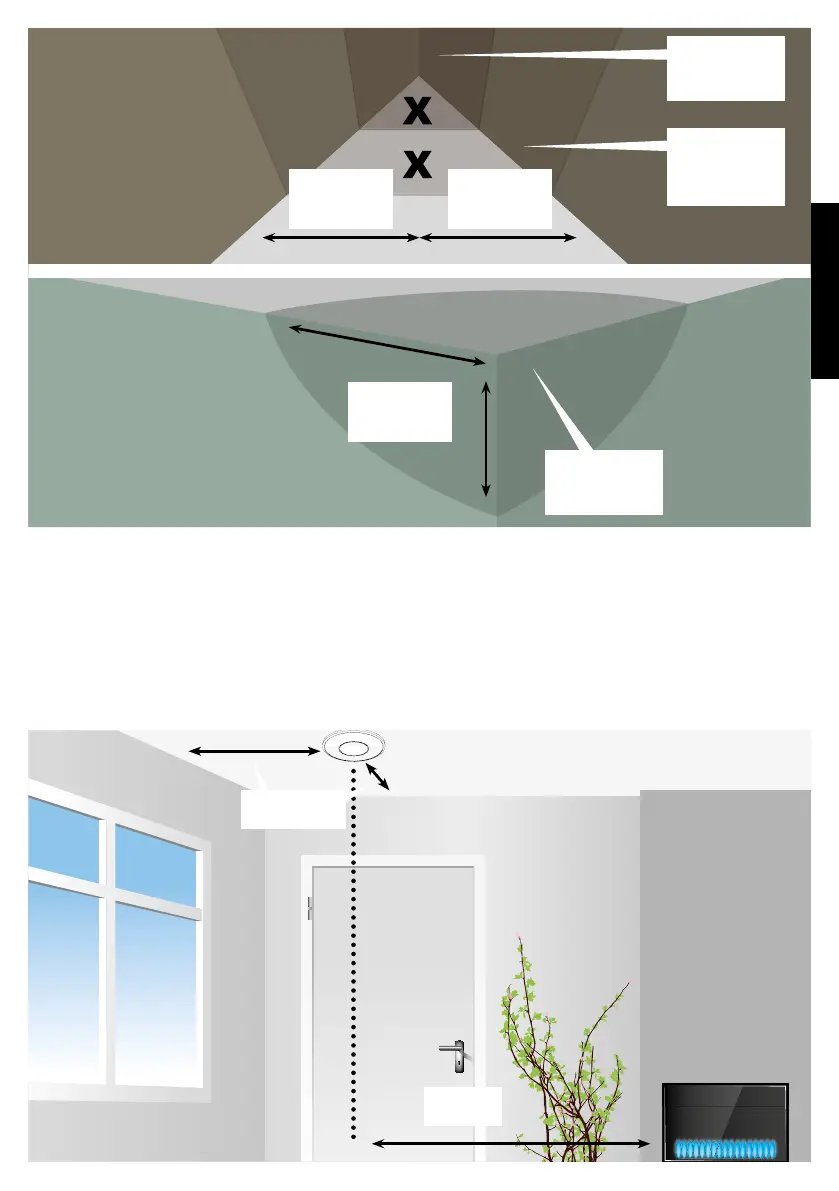 • Installez le détecteur à 61 centimètres des murs et des plafonds environnants. Il est re-