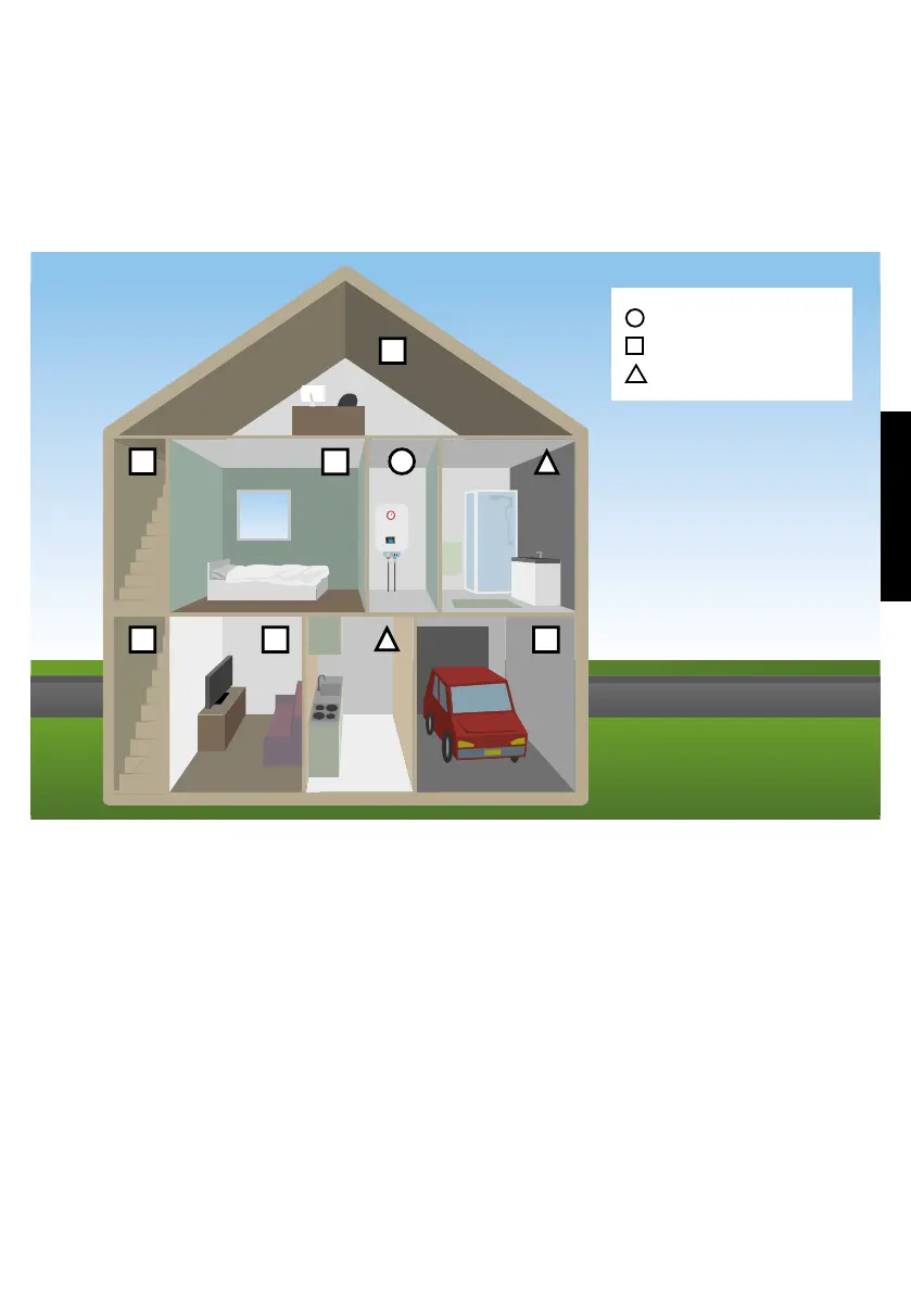 • Installieren Sie den Detektor an einem Ort, wo Sie den Alarm in Schlafzimmern
