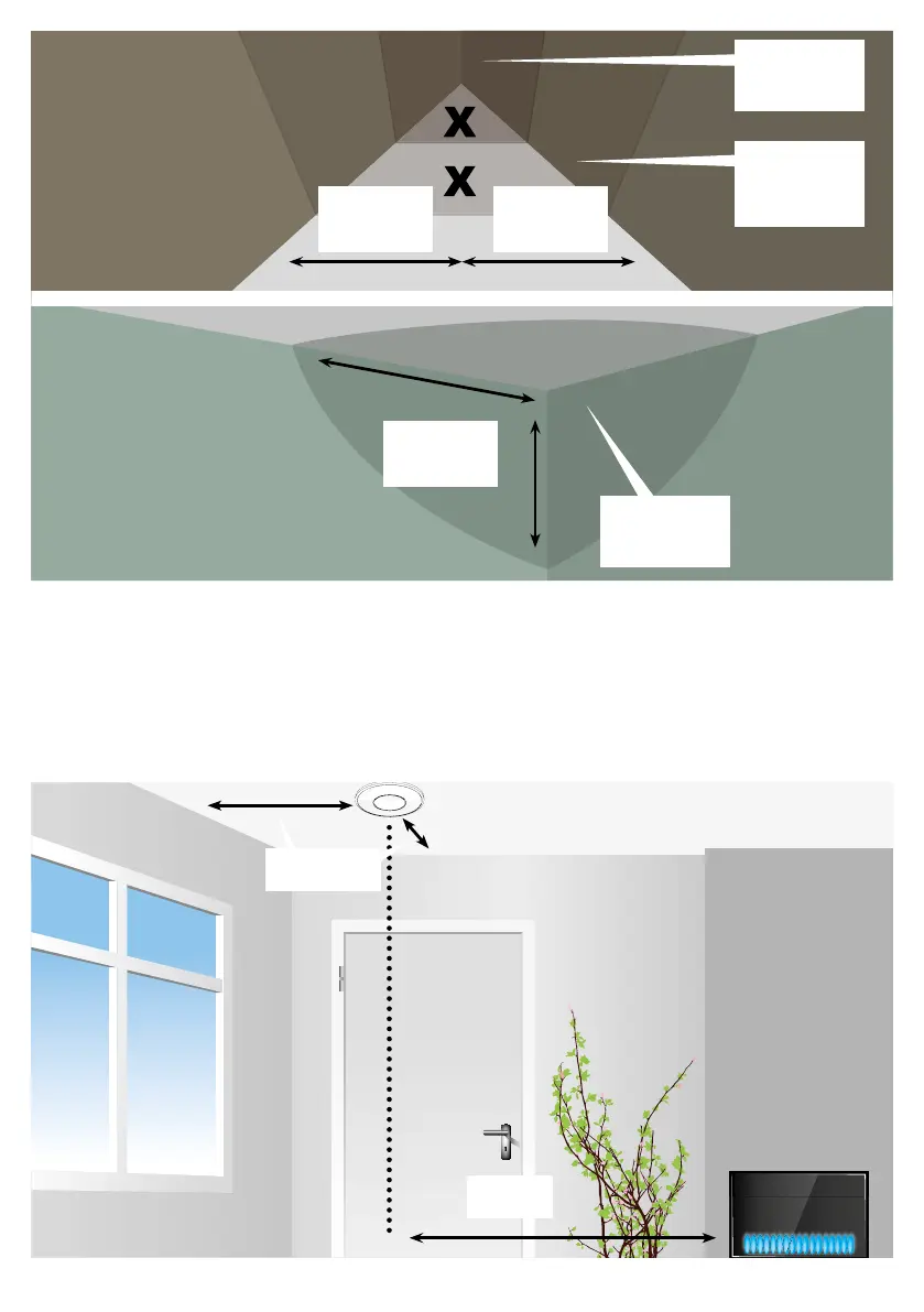 • Installieren Sie den Detektor 61 Zentimeter von umgebenden Wänden und Decken.