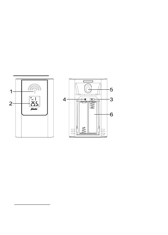 2. Display, viser skiftevis temperaturen og luftfugtigheden.