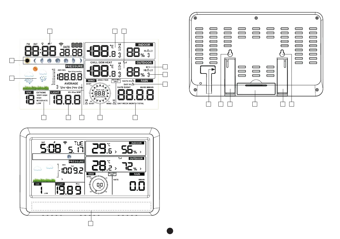 13. Outdoor unit battery indicator, illuminates when the batteries of the