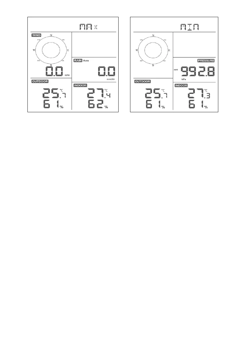5.9.1, drukt u eenmaal op de toets RAIN om de max. regen per uur weer te