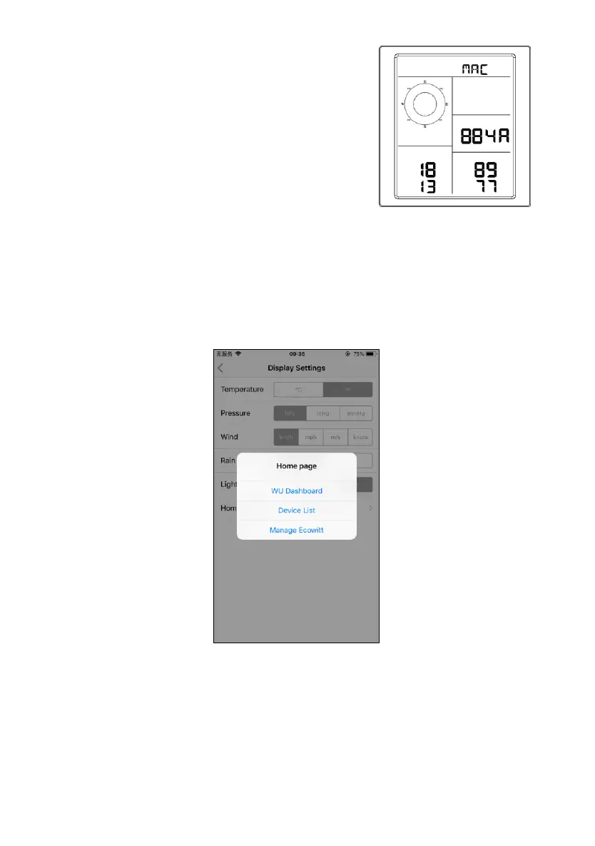 U kunt de gewenste weergave-eenheden of de standaard homepagina