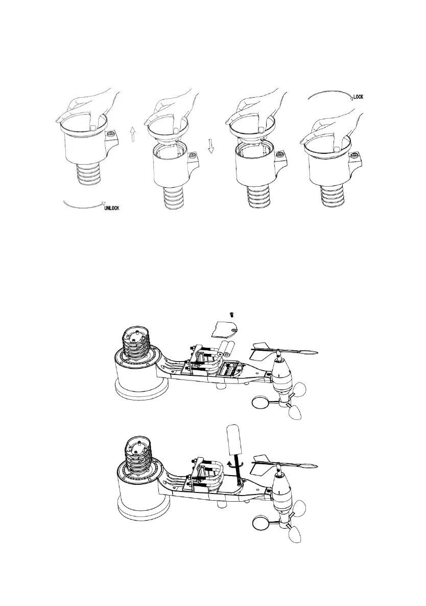 Install the rain gauge funnel. Rotate clockwise to attach the funnel to the