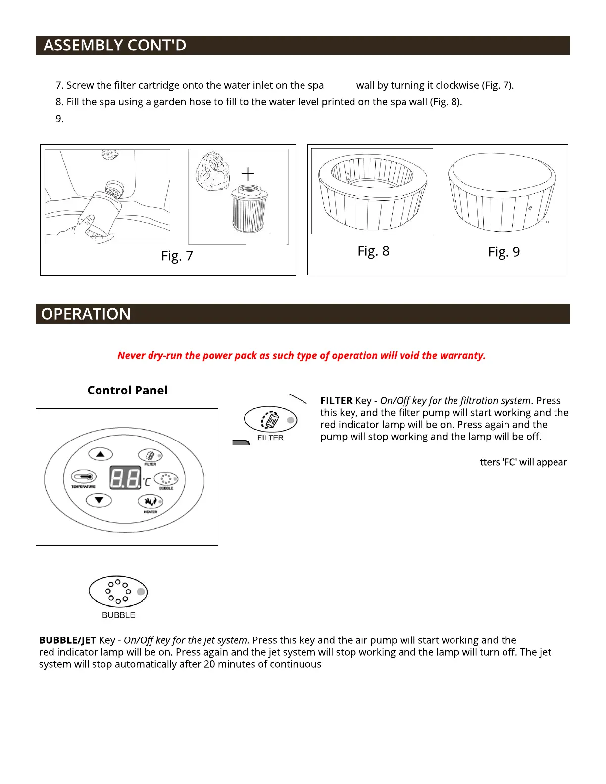 Before using, fill the SPA with water between the “Min/ Max” lines.