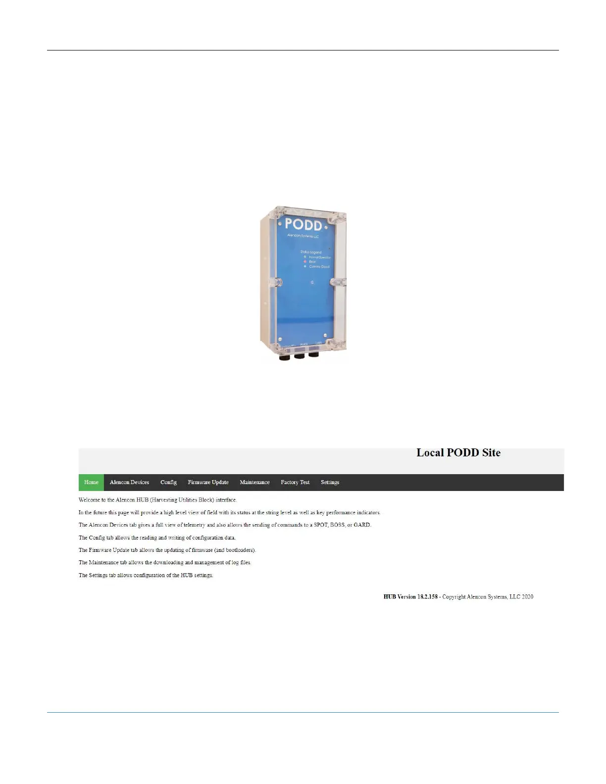 Firmware pre-loaded to the PODD that hosts the user interface, accessible through any PC