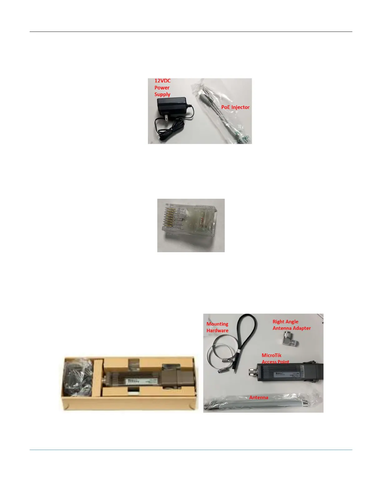 A PoE injection dongle and DC power supply for powering the PODD device. More