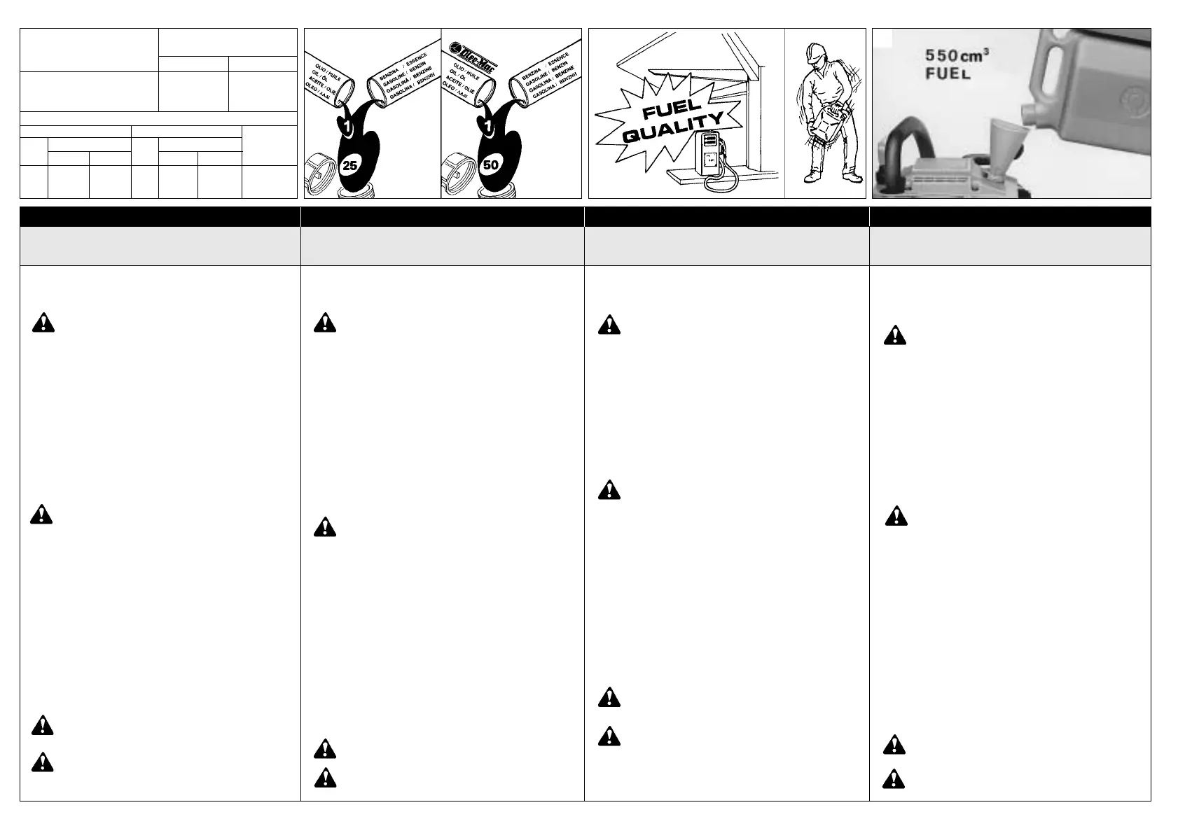 (Utilisez du carburant (mélange huile/essence) à 4% (25:1).