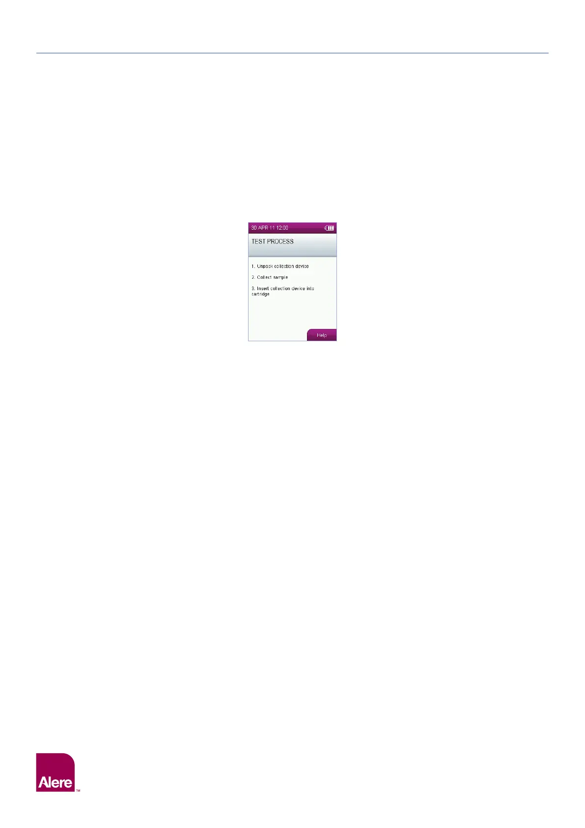 The Alere DDS2 Mobile Analyser will display instructions and prompts on the screen to guide the user