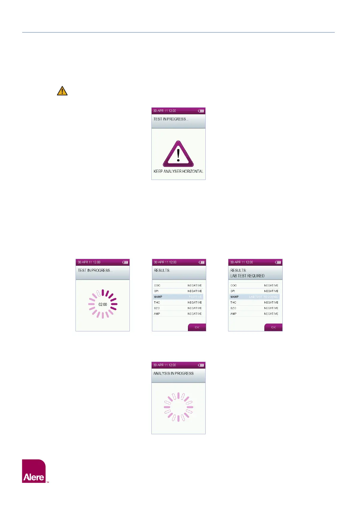 Alere DDS2 Mobile Analyser, the screen will display ‘test in progress’ and a countdown timer appear. The