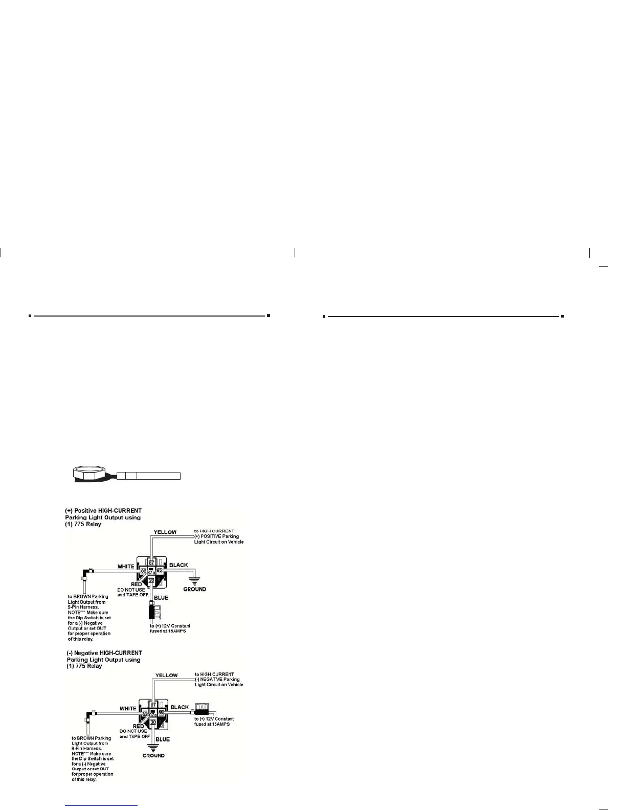 PPARKING LIGHTARKING LIGHT OUTPUT OUTPUT (+/-) (BROWN) (+/-) (BROWN) (Optional Part #775 may be required)