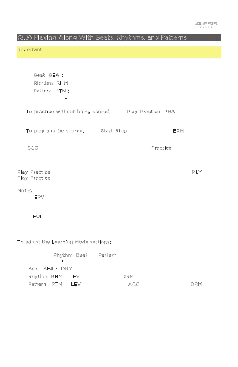 attern (PTN): (LEV) Diculty level; (ACC) Accompaniment; (DRM) Drum