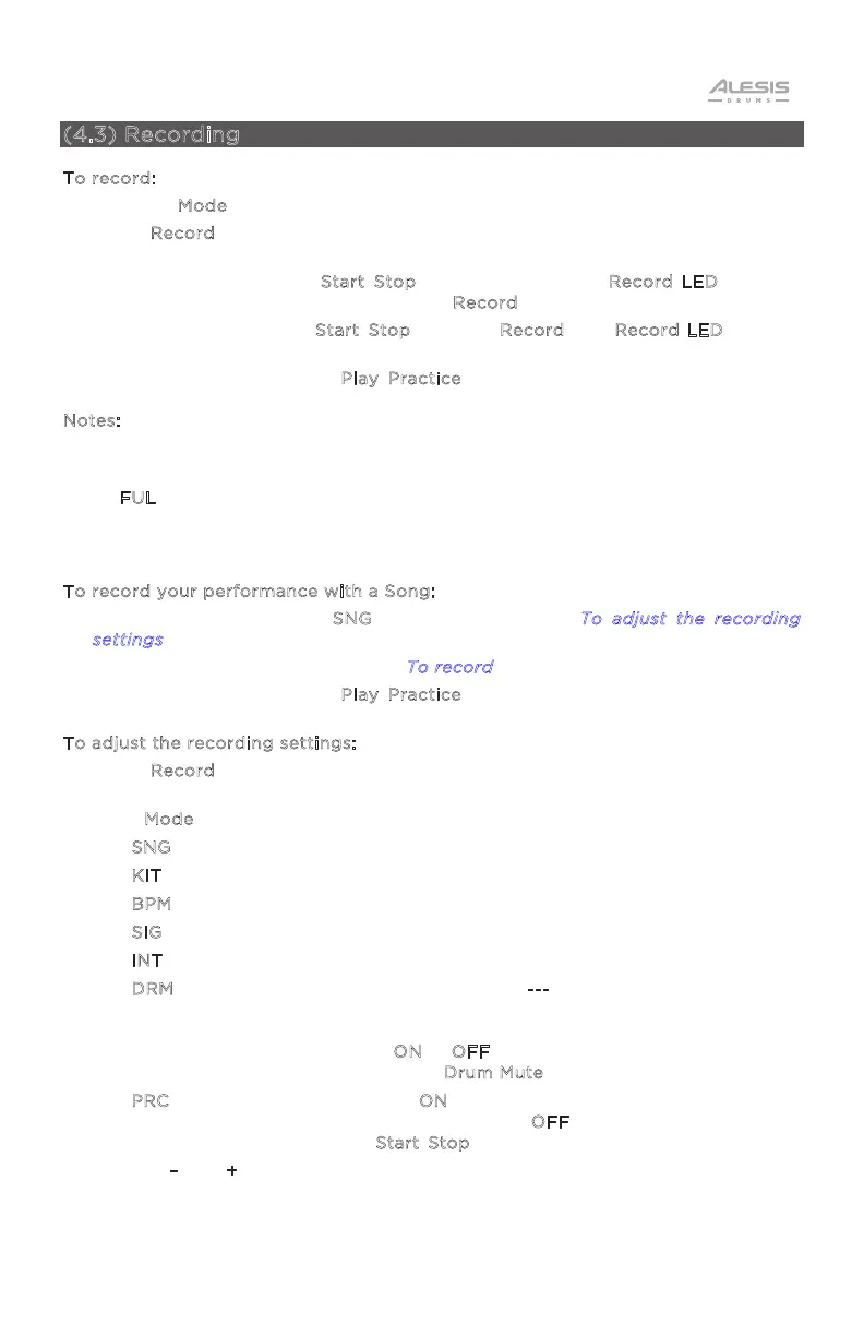 • In Learning Mode when Start/Stop is pressed, your performances are