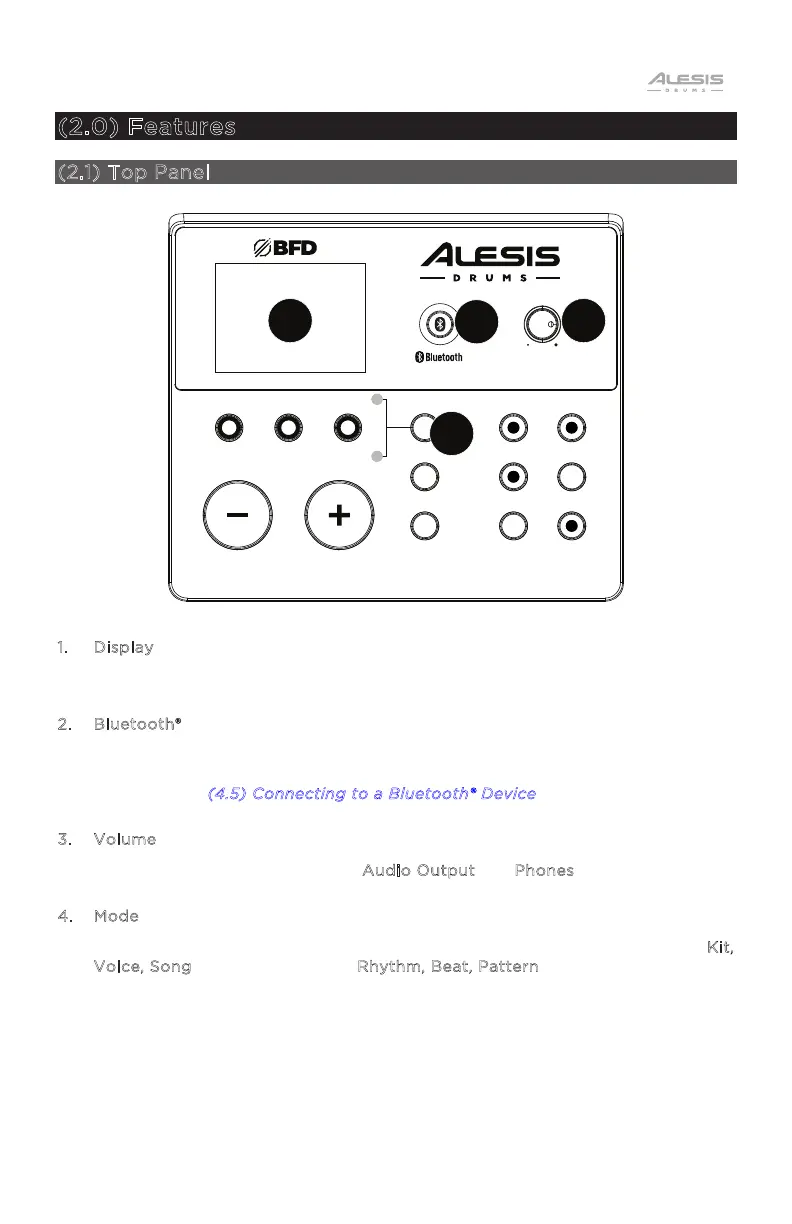 oice, Song) or Learning mode (Rhythm, Beat, Pattern), indicated by the LEDs.