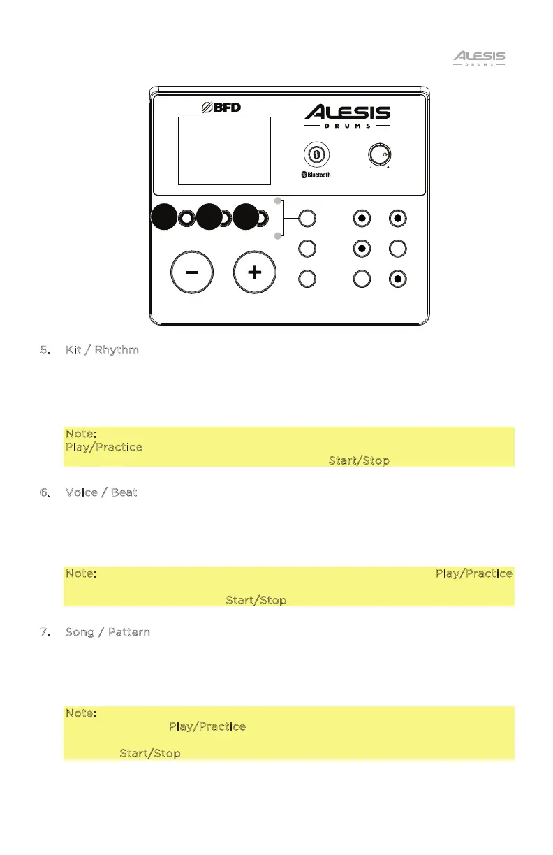 Note: To play along with the pre-recorded beat pattern, press the Play/Practice