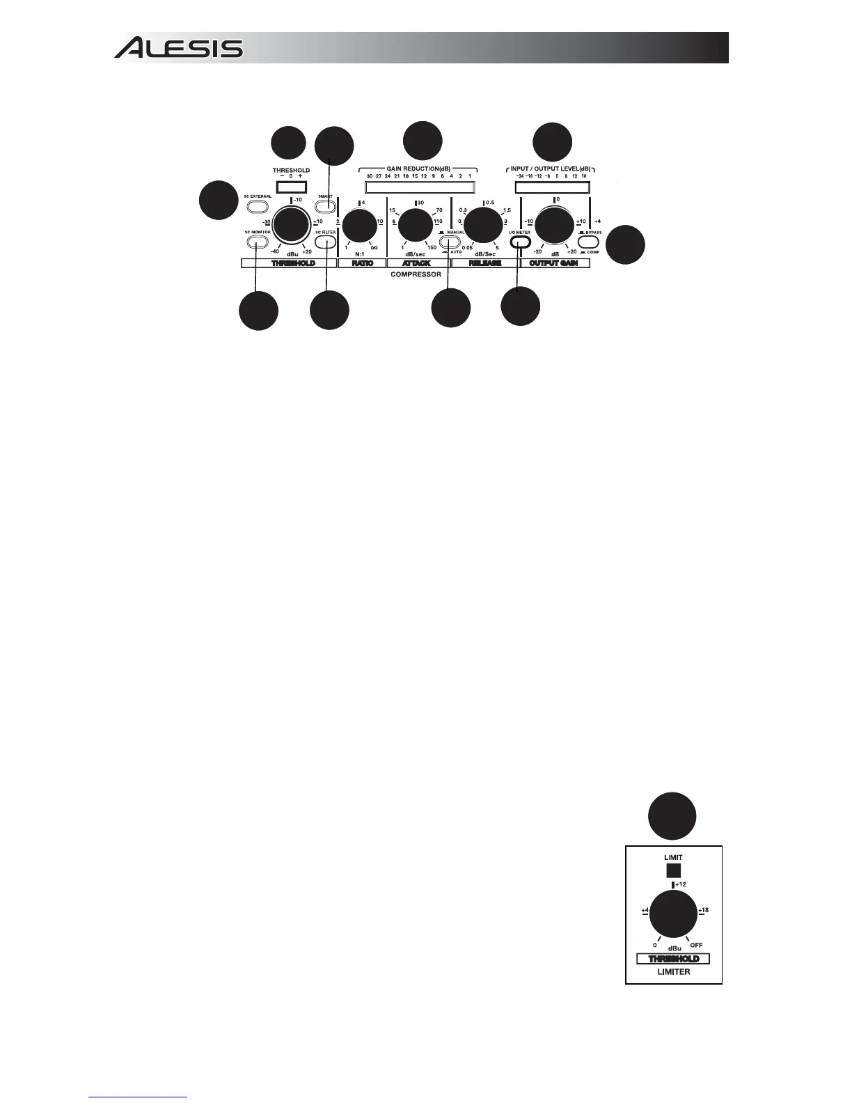 21. Threshold control- Controls the level of the Limiter