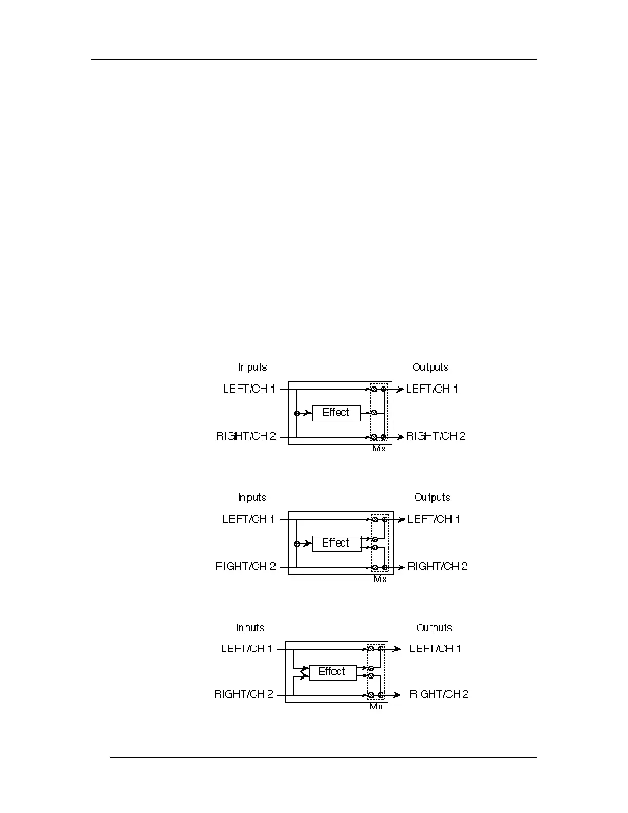 • Mono-in/stereo-out. These effects have a single mono input and two outputs.