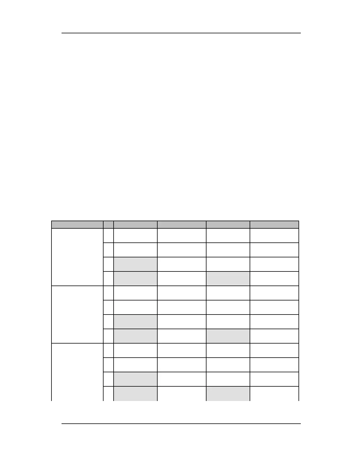 The following chart lists the parameters found on each page of each Configuration.