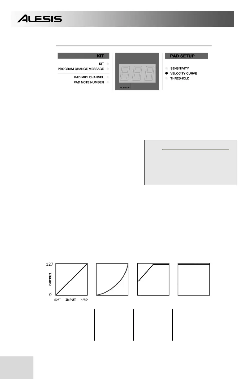 4. Use the Tand S buttons to select a Velocity Curve (1-4).