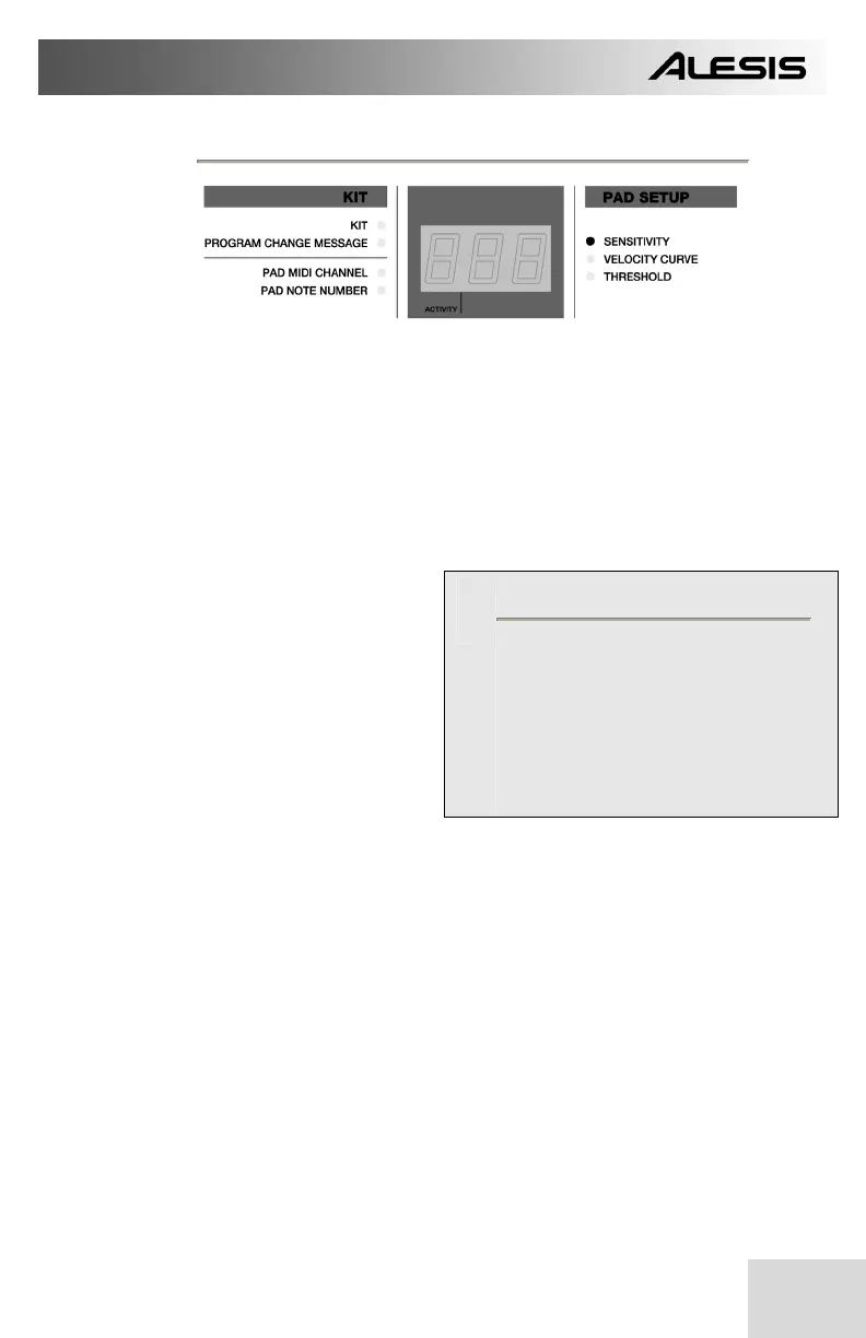 3. Le niveau de sensibilité pour le pad ou le commutateur sera