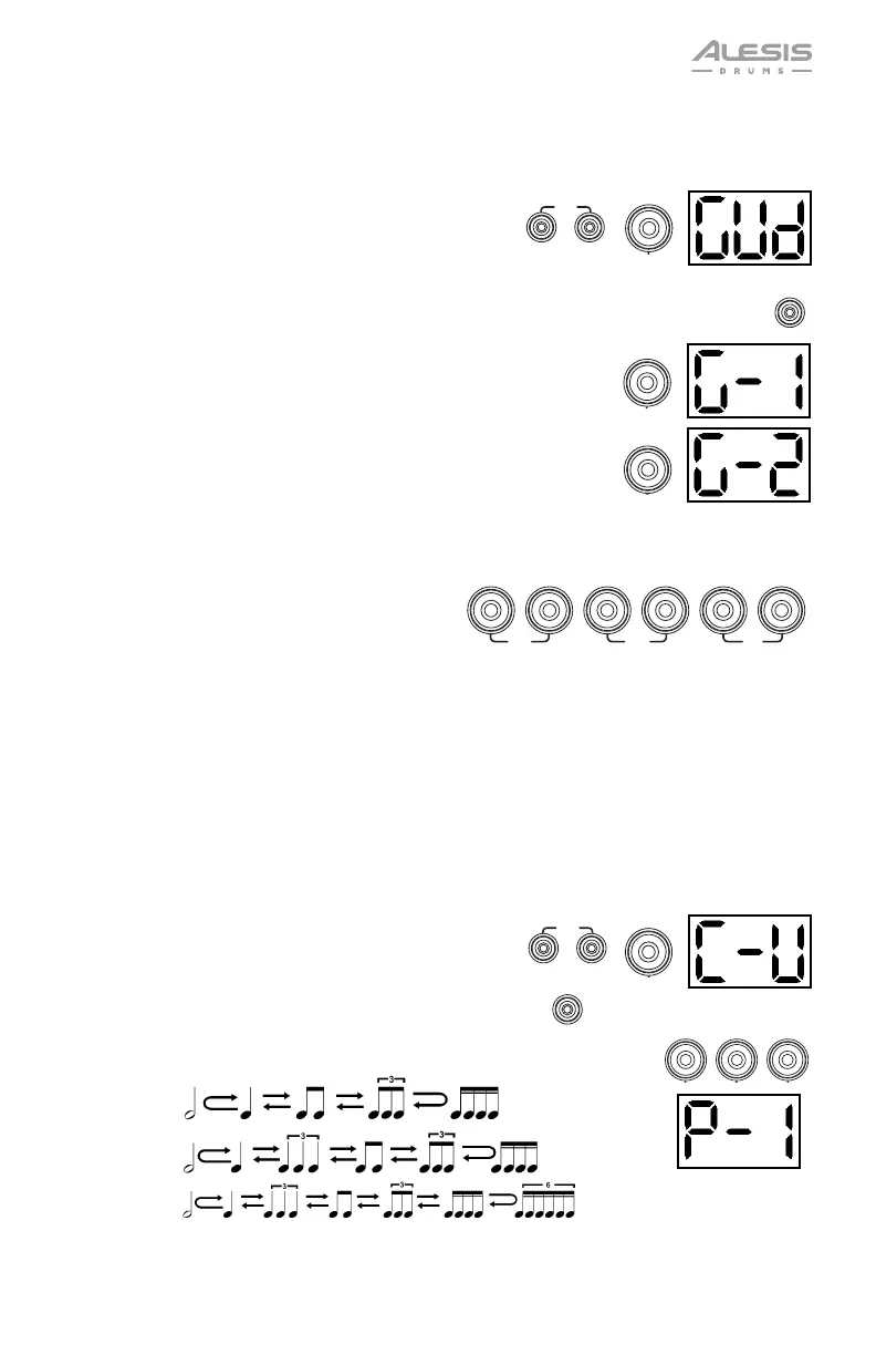 5. Hit the pads in time with the metronome. The six LEDs of the 1-5/Variation buttons indicate
