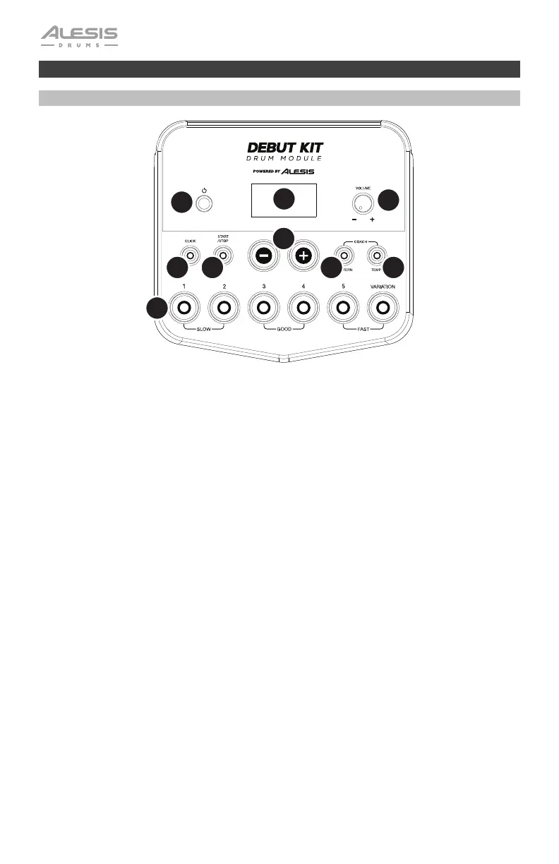 9. Botones de 1-5/variación: Pulse cualquiera de estos botones para entrar al modo de kit