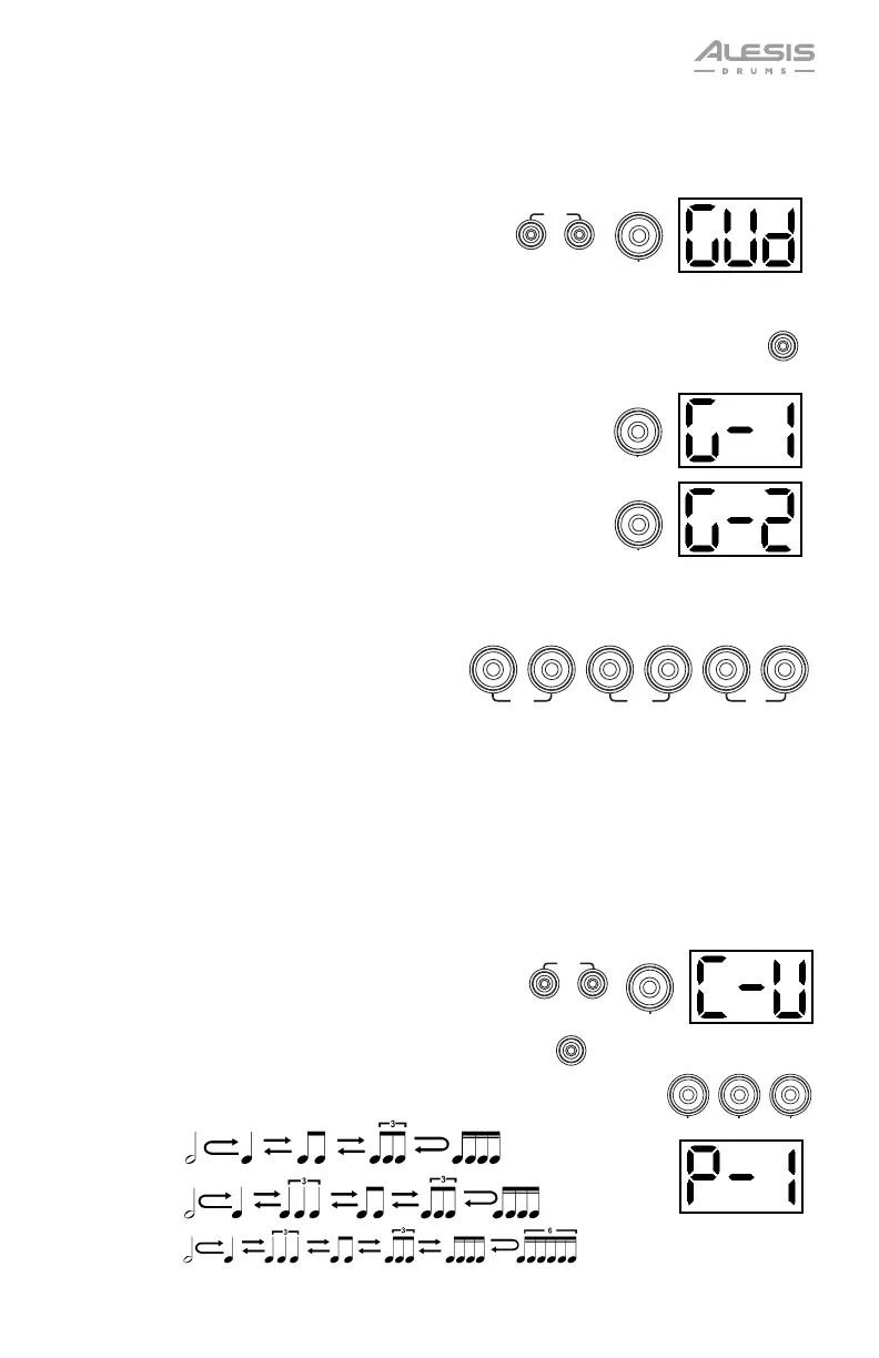 5. Schlagen Sie die Pads im Takt des Metronoms an. Die sechs LEDs der 1-5/Variationstasten