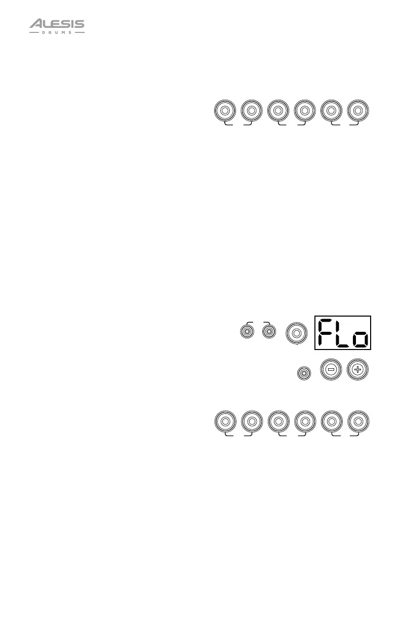 Pads (das Ausgangstempo entspricht der aktuellen Metronomeinstellung). Die sechs LEDs der 1-