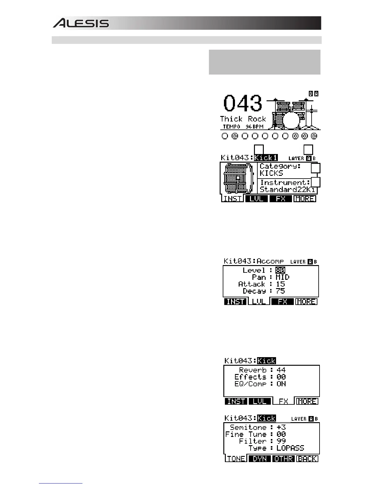 2. Press EDIT INST to edit drum Voice parameters or EDIT