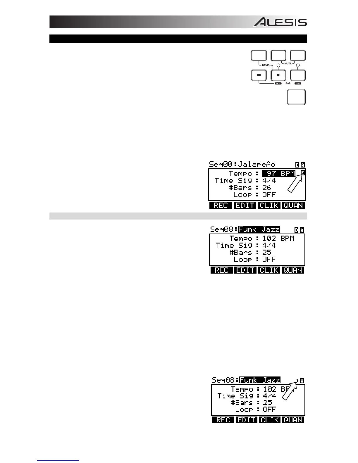 To hear a demo Sequence, simply hold down SEQ and press PLAY.