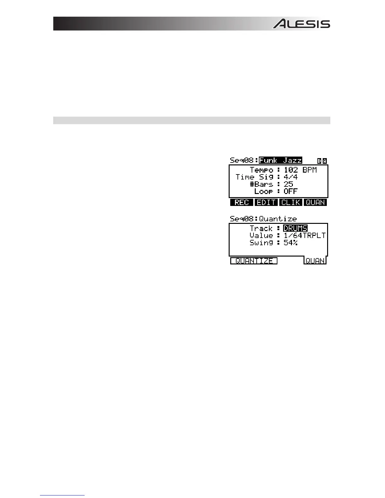 note. The range is 1/4 – 1/64 (regular and triplet) and "OFF," which will turn quantization off.