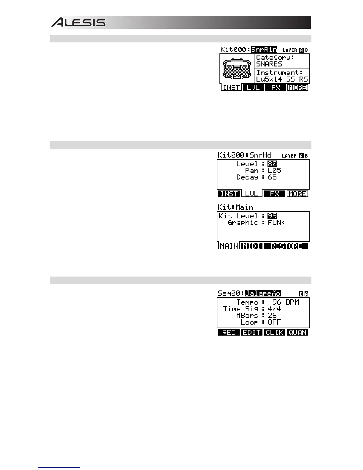subtle or dramatic changes to the sound of your Kits by changing the Instruments in each Layer.