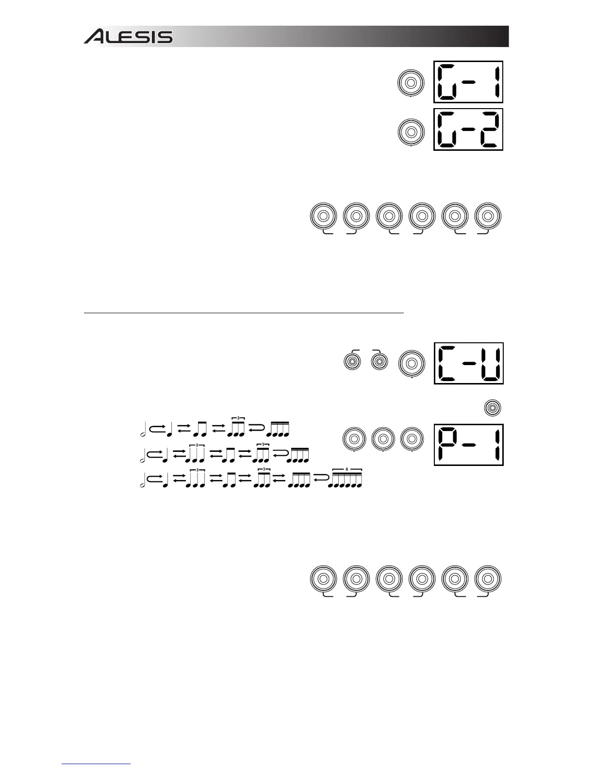 5. Battere i pad al ritmo selezionato (vedi sopra) e a tempo con il metronomo (il tempo iniziale è