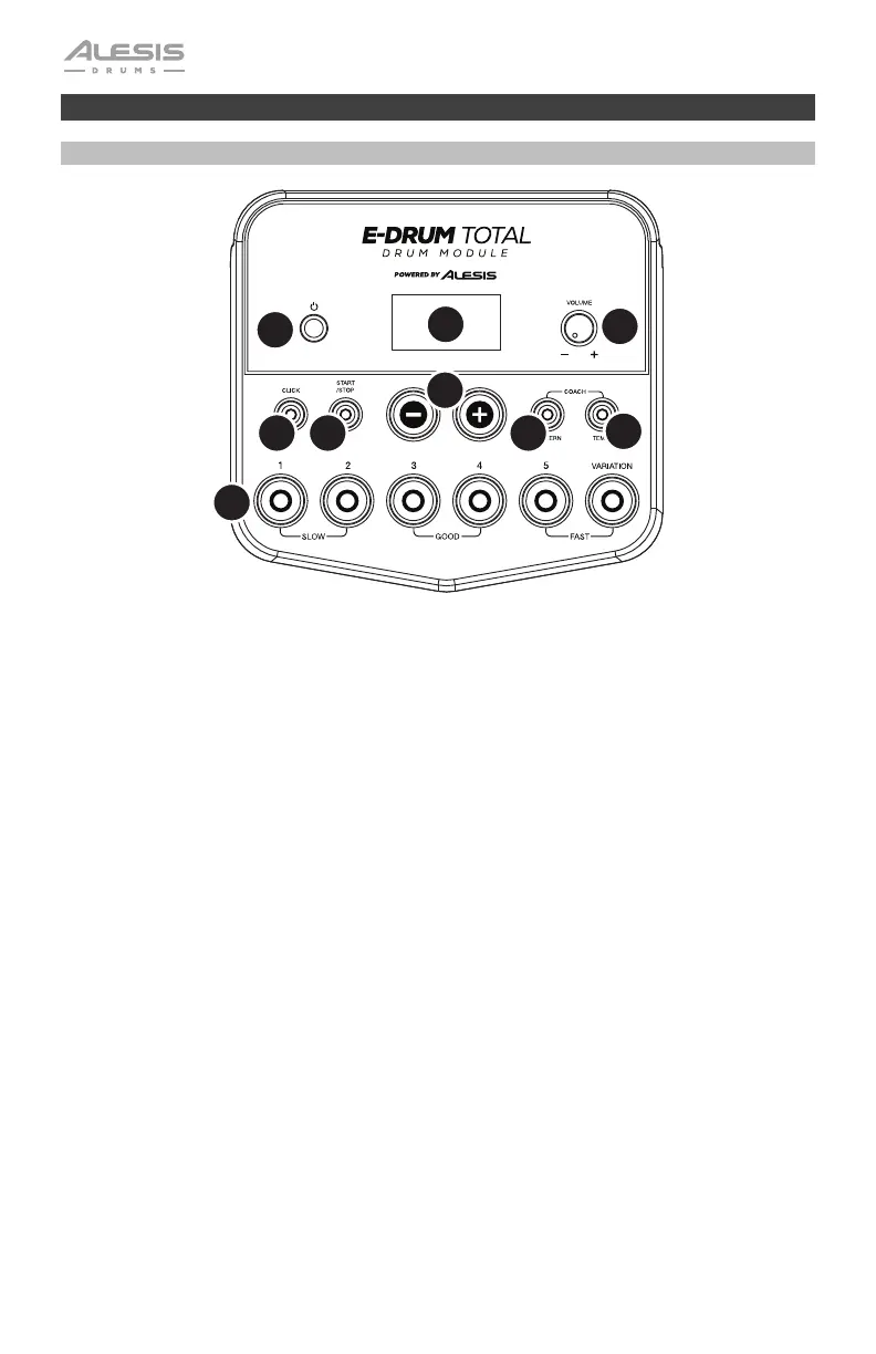 2. Display: Dieser Bereich zeigt Werte und Text zu Funktionen und Betrieb Ihres Drum-Moduls an.