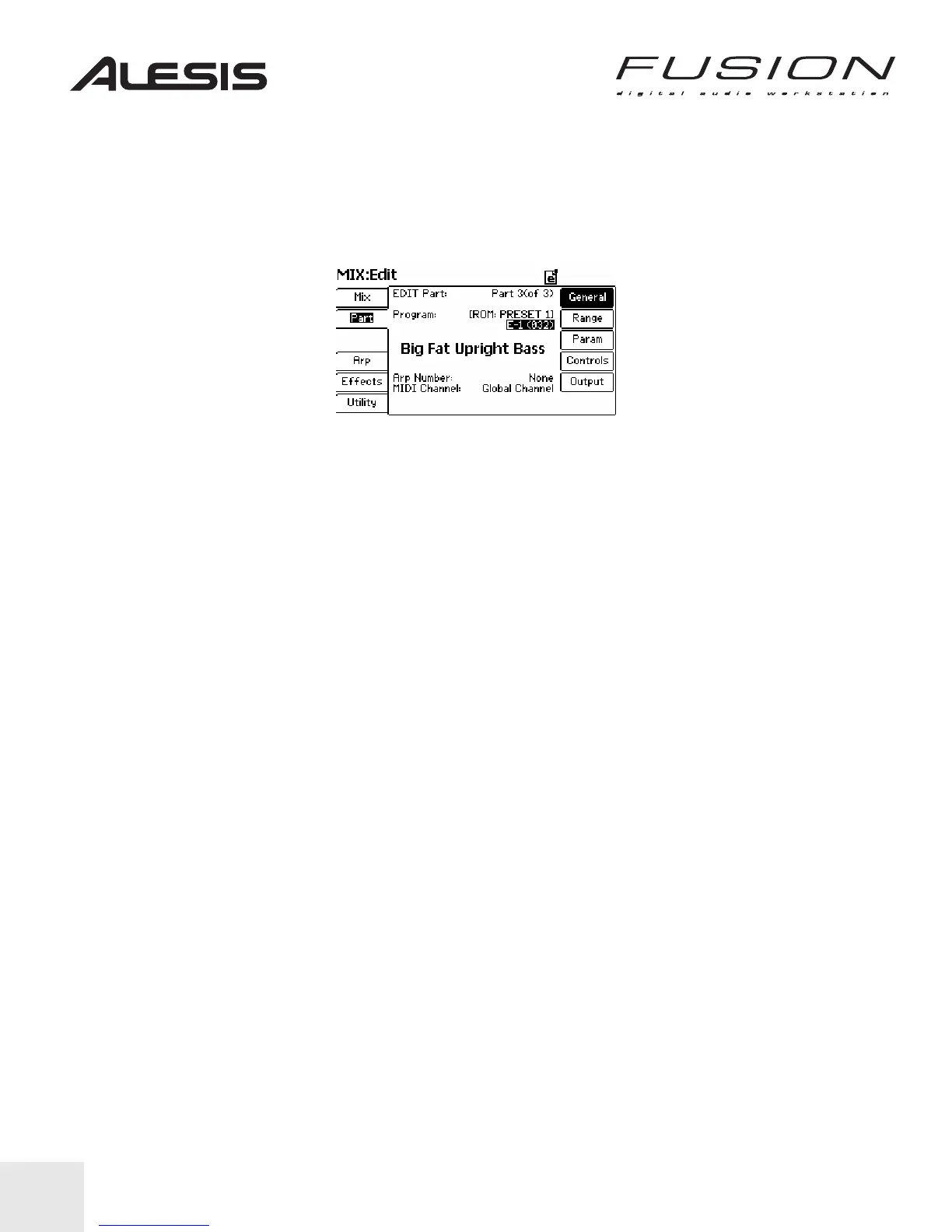 While in Mix Mode, press EDIT and then press PART. Your screen should look like below.