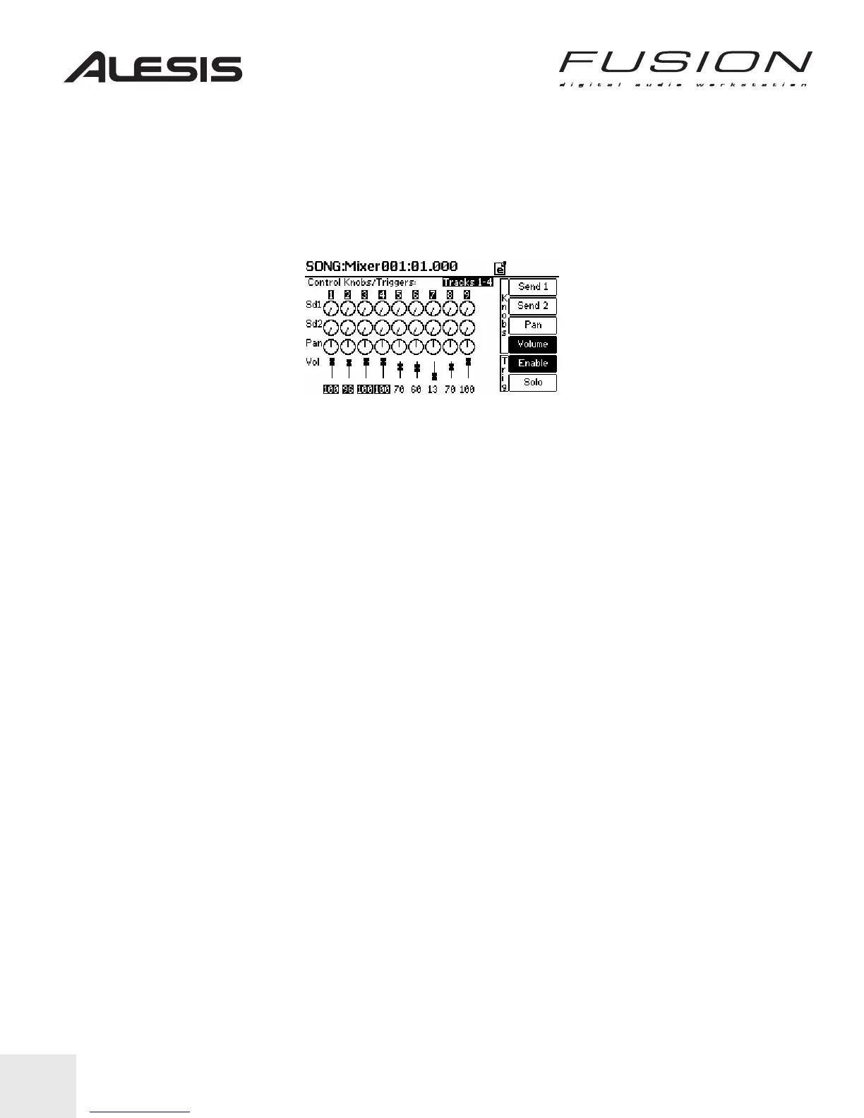 1. From SONG mode, press the MIXER button to the left of the Fusion’s display. Your screen will