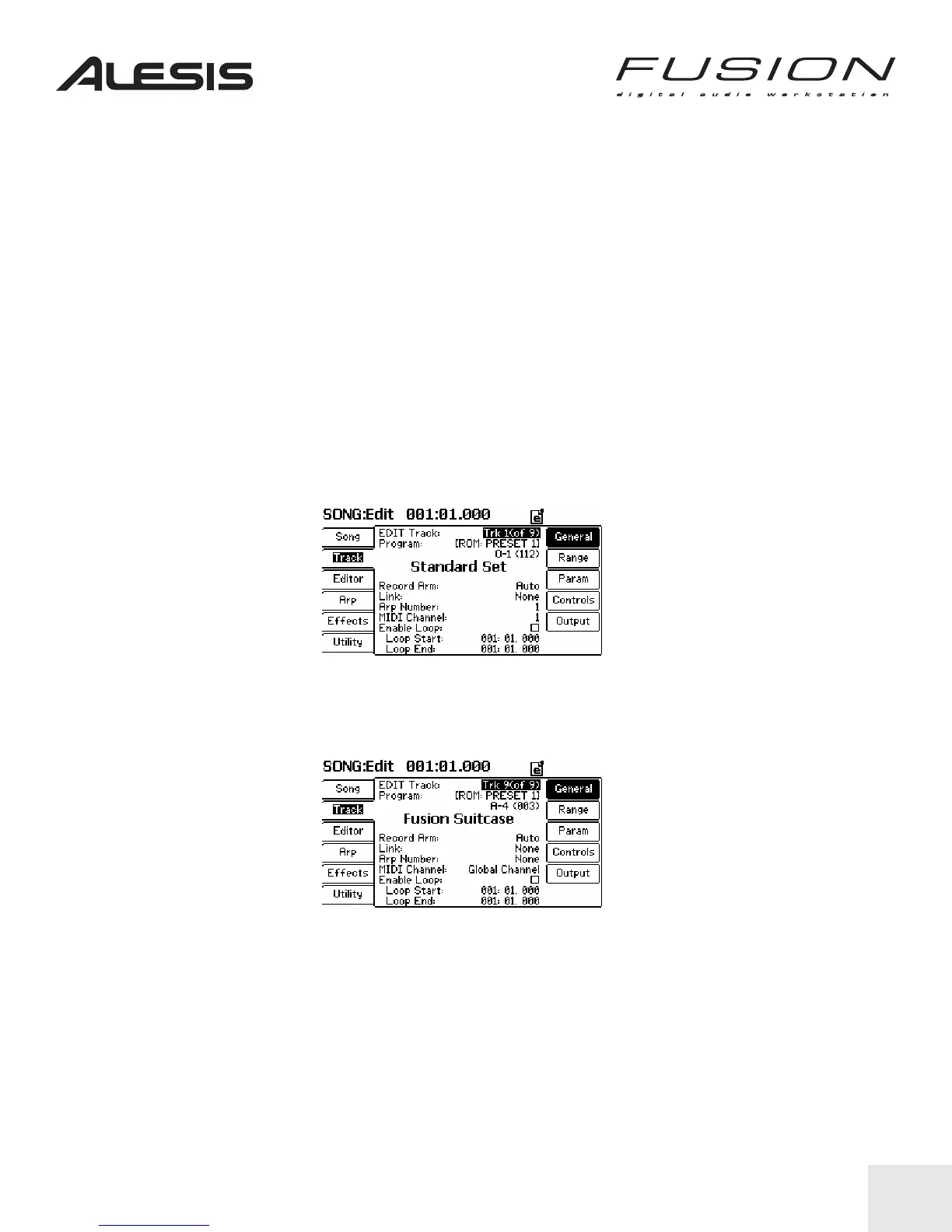 3. While in SONG mode, press Edit, then the Track tab on the left of the display, as shown