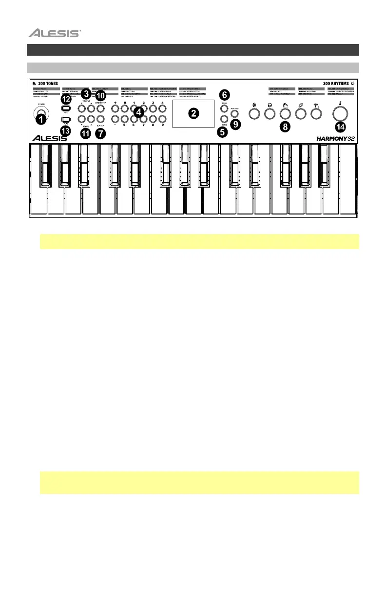 8. Percussion: Drücken Sie diese Tasten, um Percussion-Sounds abzuspielen. Die Bilder über jeder Taste zeigen