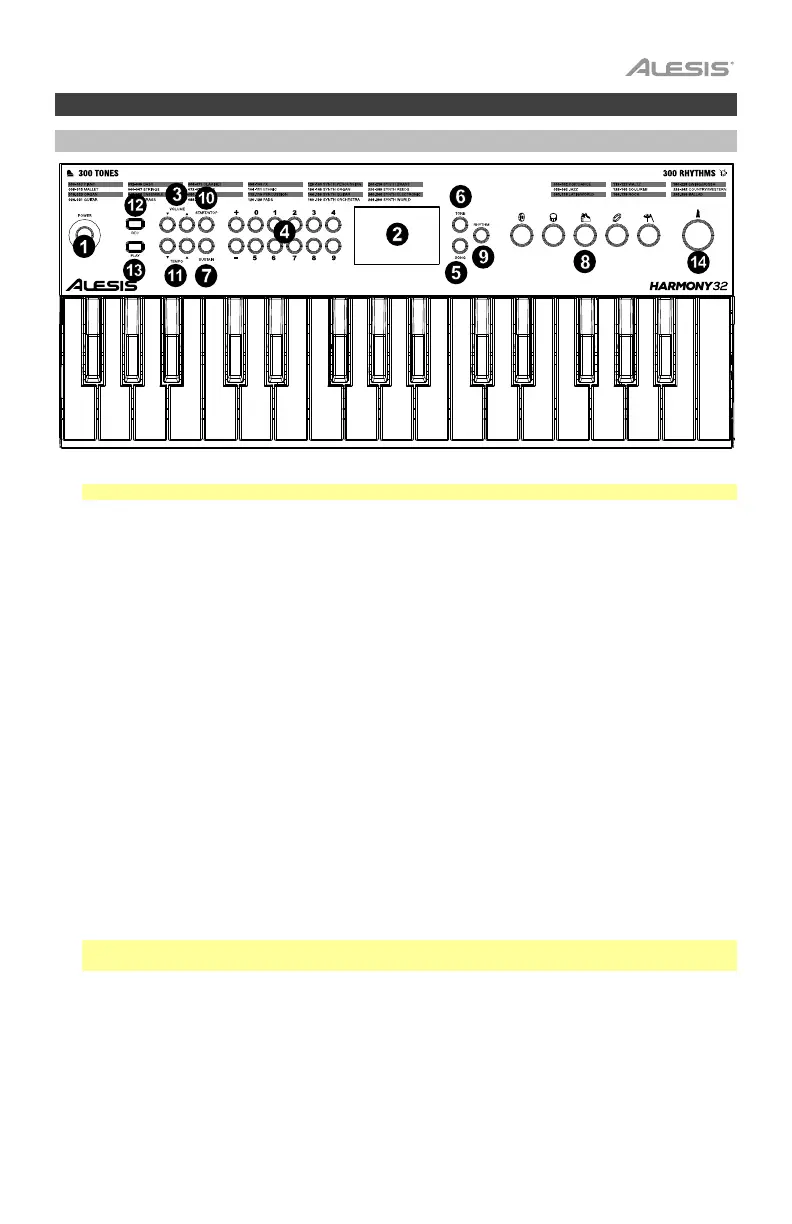 9. Rhythm: Pulse este botón y luego utilice los botones numéricos o + / - para seleccionar uno de los 300 ritmos