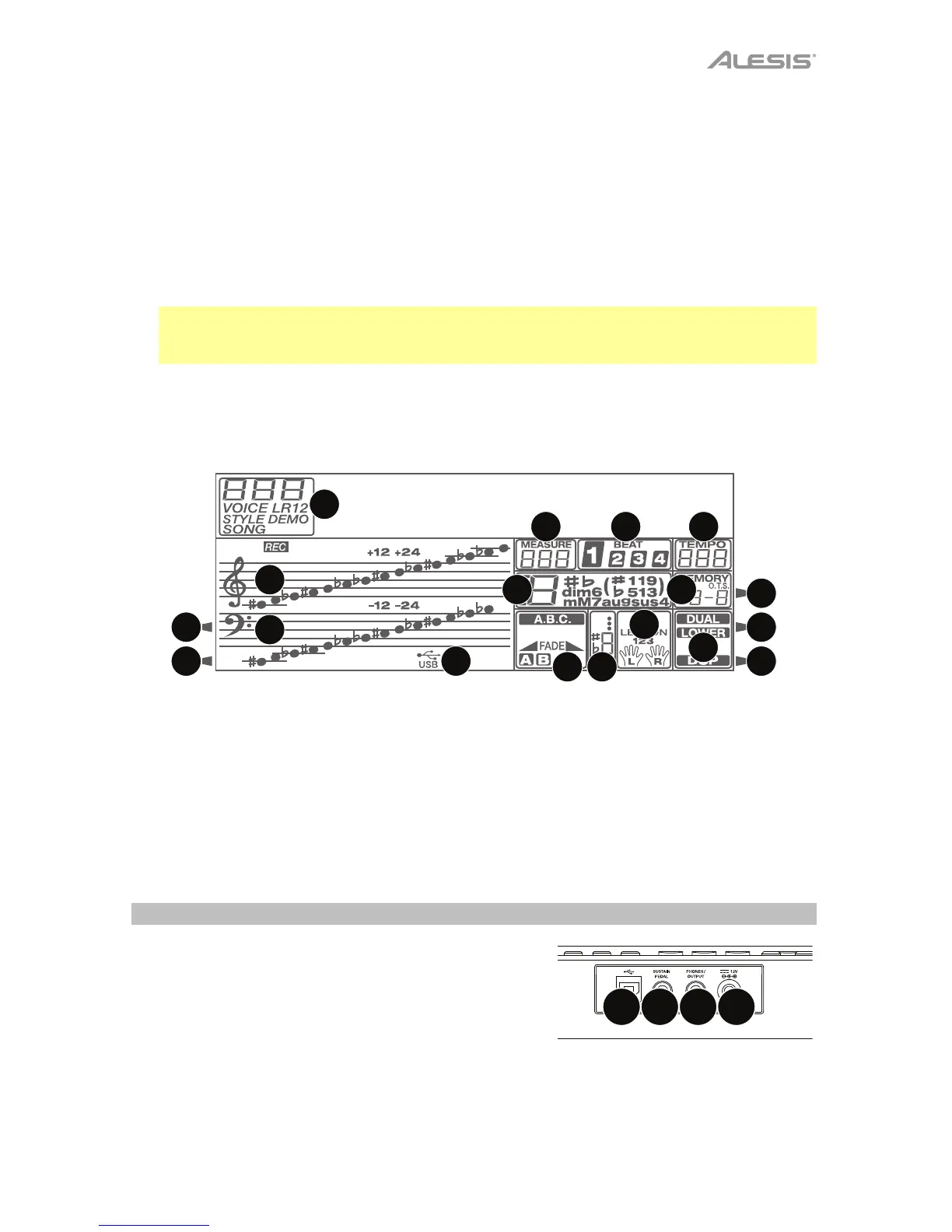 28. Metrónomo: Pulse este botón para encender y apagar el metrónomo.