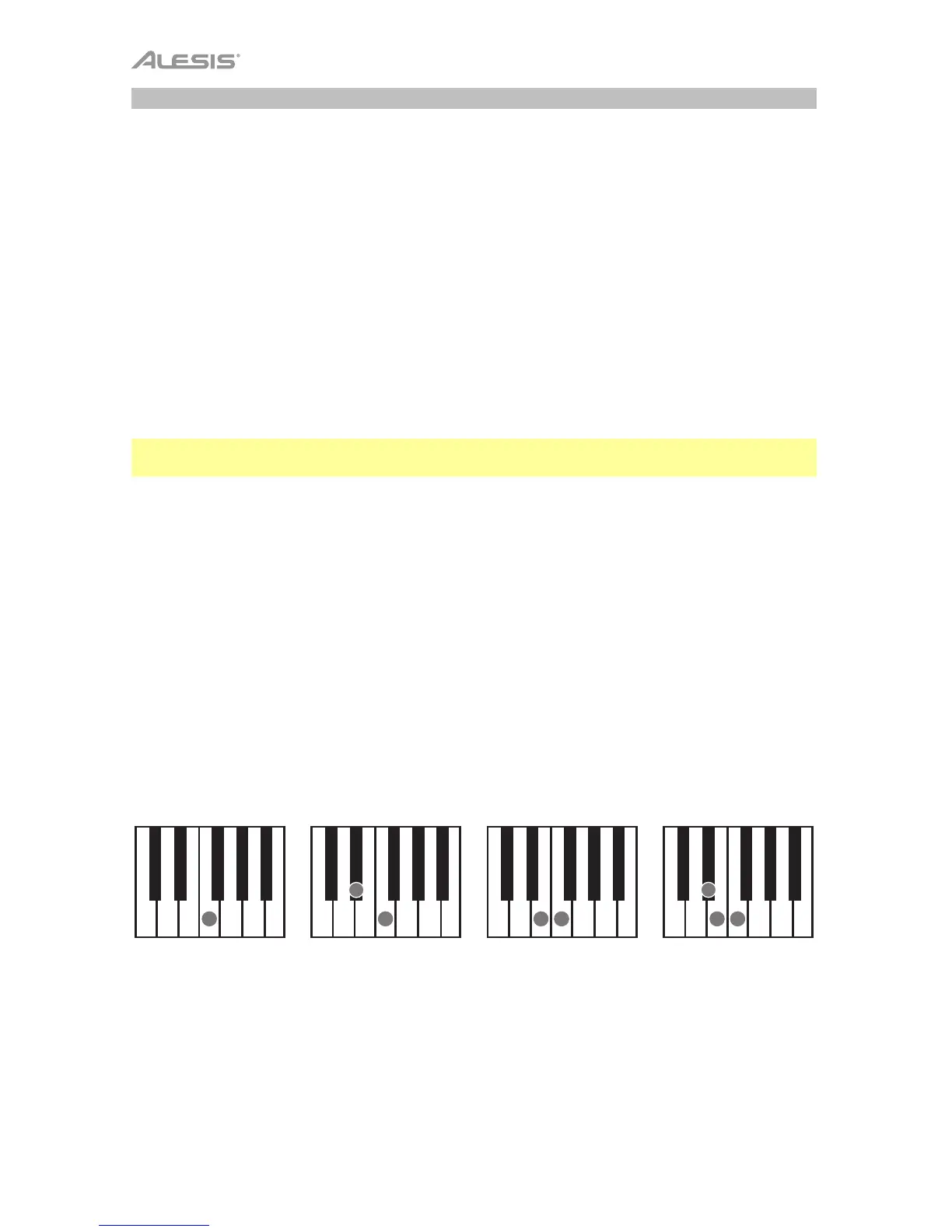 Para tocar un acorde menor (m), toque una tecla y la tecla 2 semitonos más abajo.