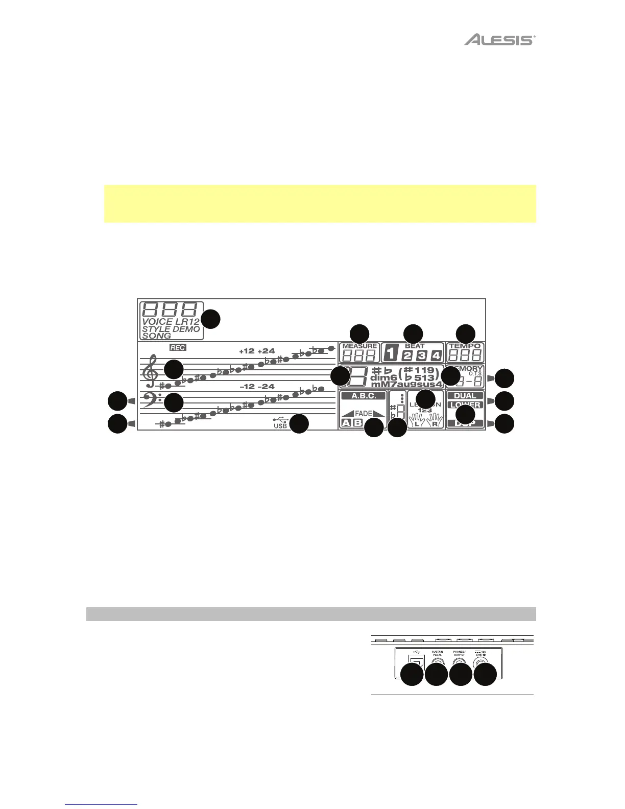28. Metronomo: premere questo tasto per accendere e spegnere il metronomo.