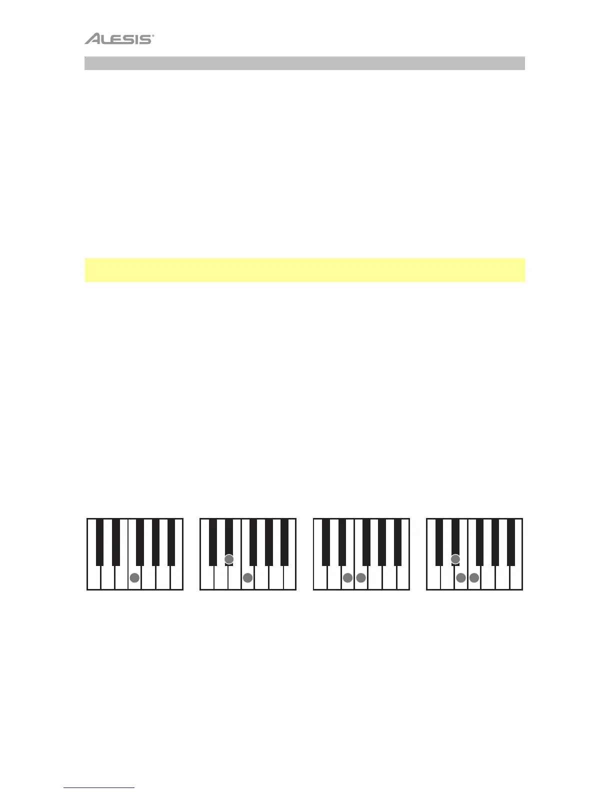 Per suonare un accordo minore (m), premere un tasto e il tasto 2 semitoni più in basso.