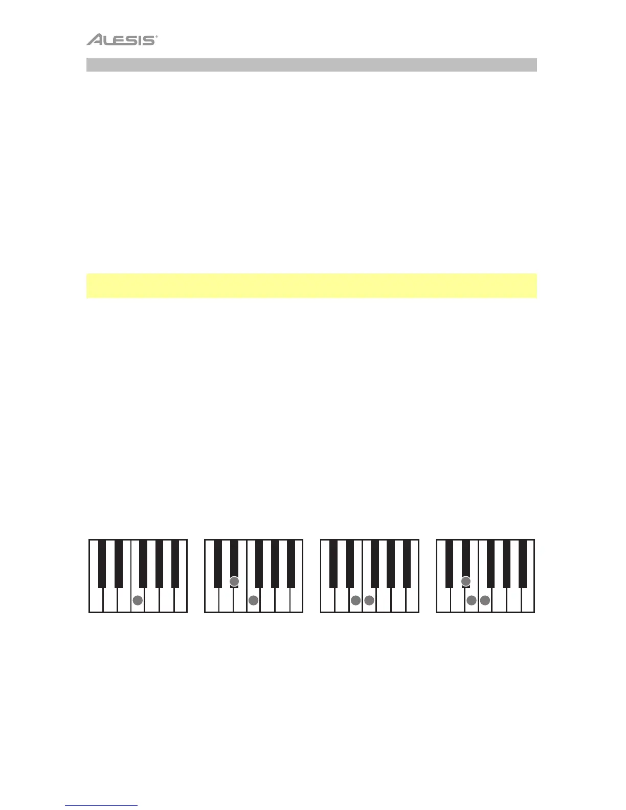 To play a minor chord (m), press a key and the key 2 semitones below it.