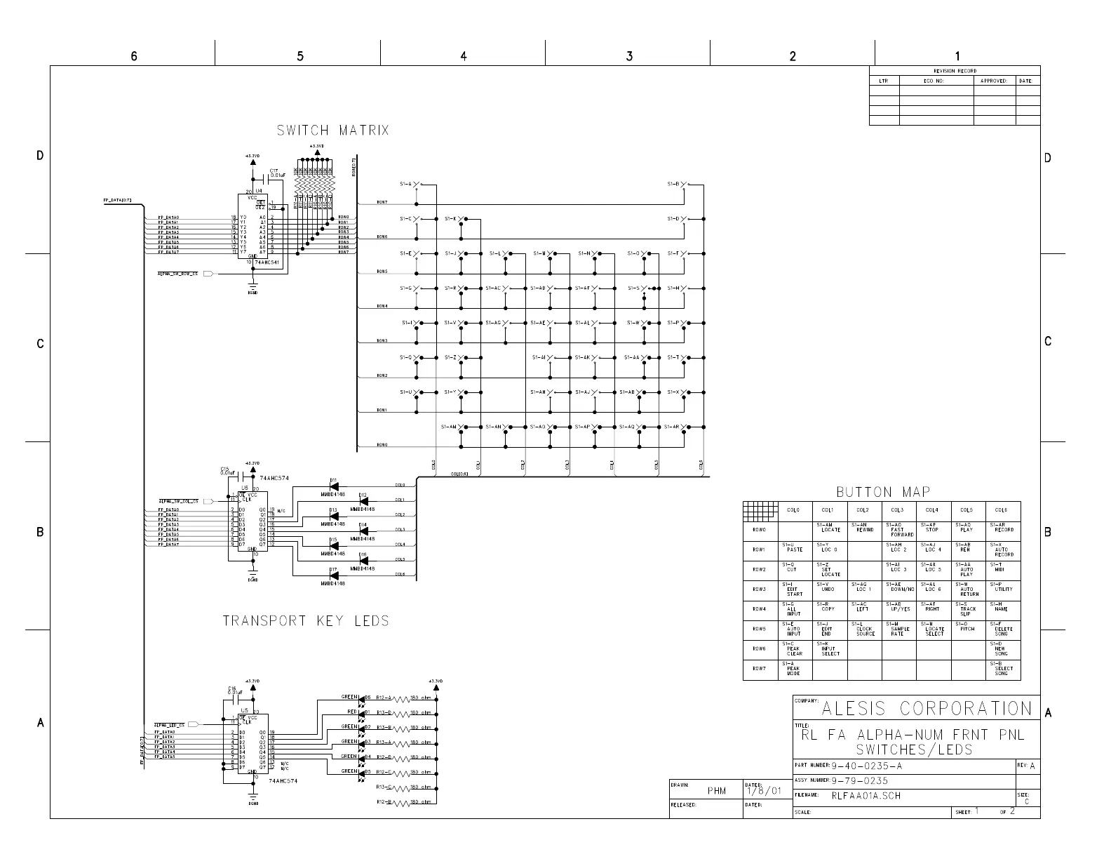 Alesis HD24 - ADAT HD24 Switch Matrix; Front Panel Button Map