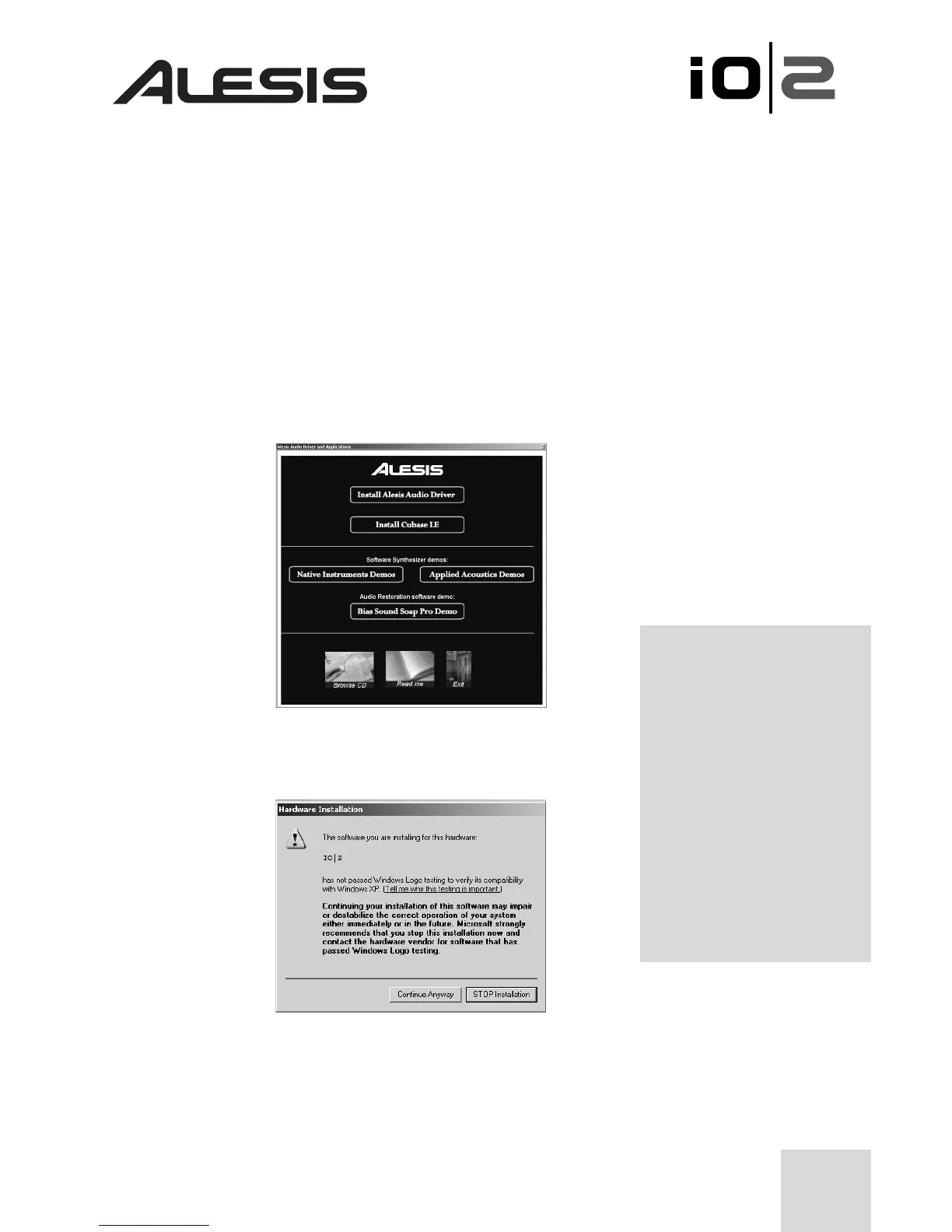 Klicken Sie “Install Alesis Audio Driver,” um die